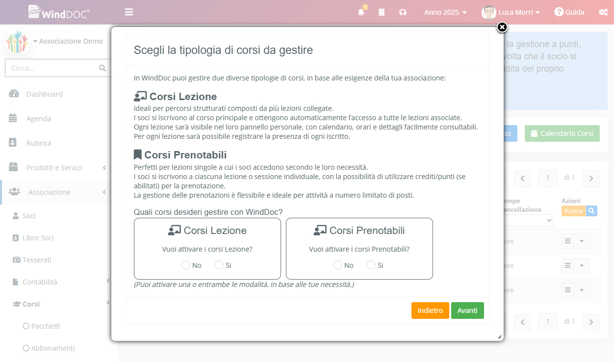 WindDoc consente di gestire due diverse tipologie di corsi:- Corsi Lezione: